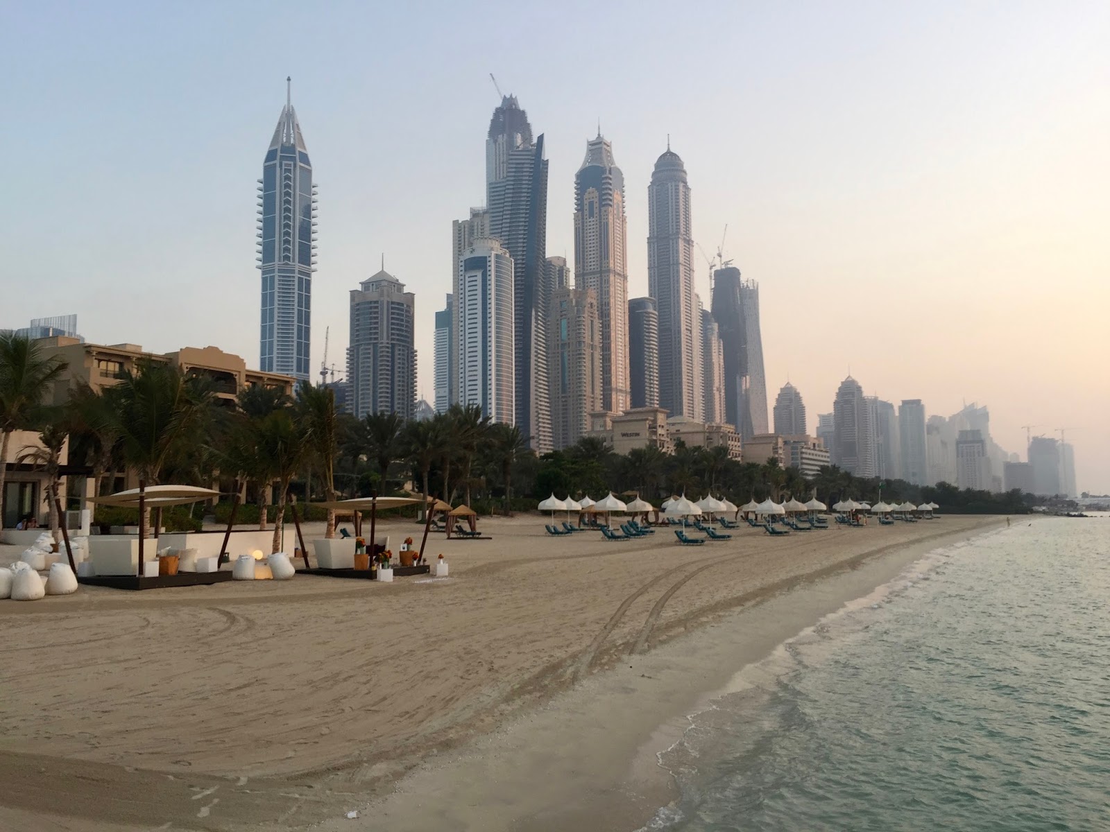 Beach of The Palace & Dubai Marina in the background